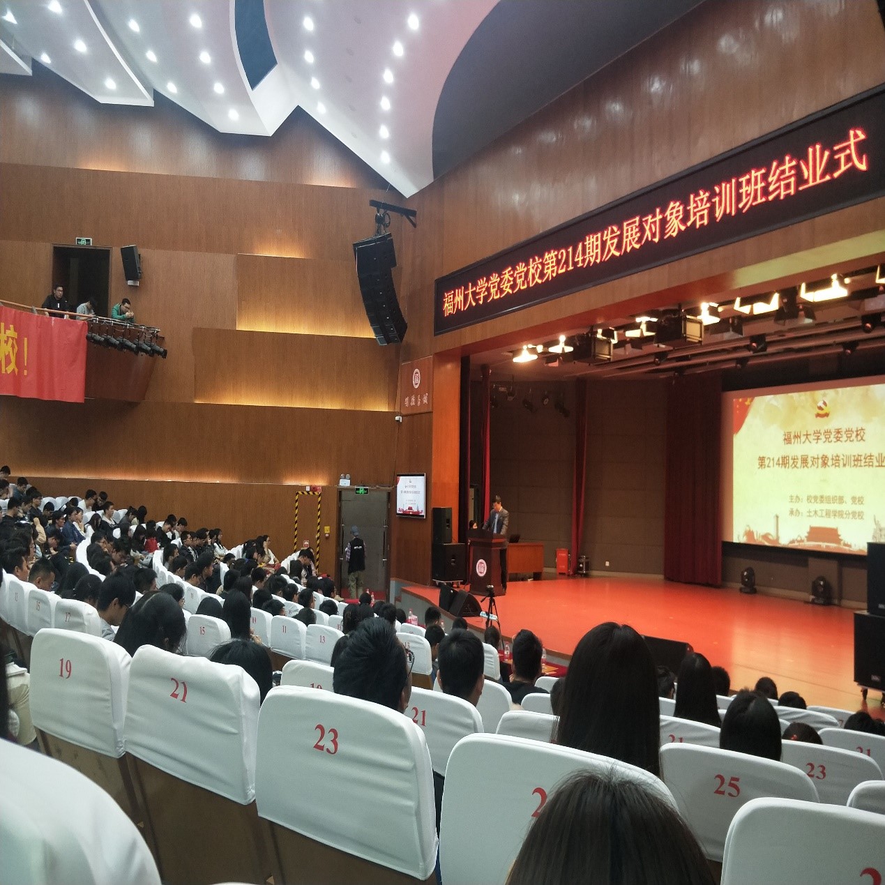 4月18日晚,威尼斯wns8885556党委党校第214期发展对象培训班于旗山校区图书馆博学厅顺利开班。本次培训班由威尼斯wns8885556党委党校、威尼斯wns8885556校党委组织部联合主办,土木工程学院分党校承办;机关-党委书记、校党委正处级组织员兼组织部副部长施卫华和校党委副处级组织员钟钛申莅临现场。值得高兴的是,中共威尼斯wns8885556委员会党校于本次培训班授予威尼斯官网“优秀学习单位”奖项,肯定了威尼斯官网的党校学习成果。
