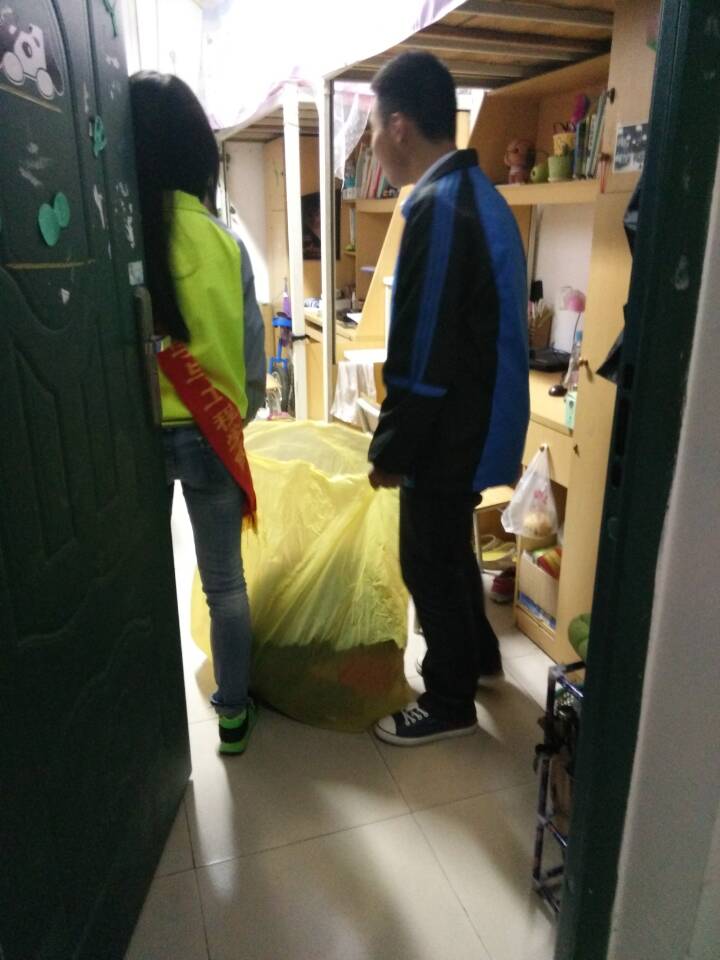 4月20日晚,红十字会于八号楼、九号楼展开活动的前期宣传,并对有意愿捐赠衣物的宿舍进行登记。21日晚,志愿者前往所有登记宿舍回收衣物,过程持续3个多小时,而后,于当晚对衣物进行初步的分类和整理,在整理期间,虽然日光灯发生故障,但志愿者们仍借助微弱的灯光将本次回收的全部衣物整理好。23日, 红会负责人对物品进行了装袋、标记。经过统计,本次活动共有70多间宿舍参与了爱心旧衣物捐赠活动,一共收集衣物类1000多件(包括衣服/裤子/鞋子/被子等)。据了解,红十字会将于4月26日将所得“爱心”衣物捐献给福州市马长白慈善社团,再由它们捐给贫困地区。