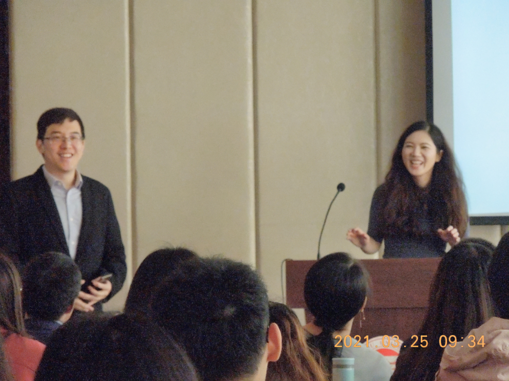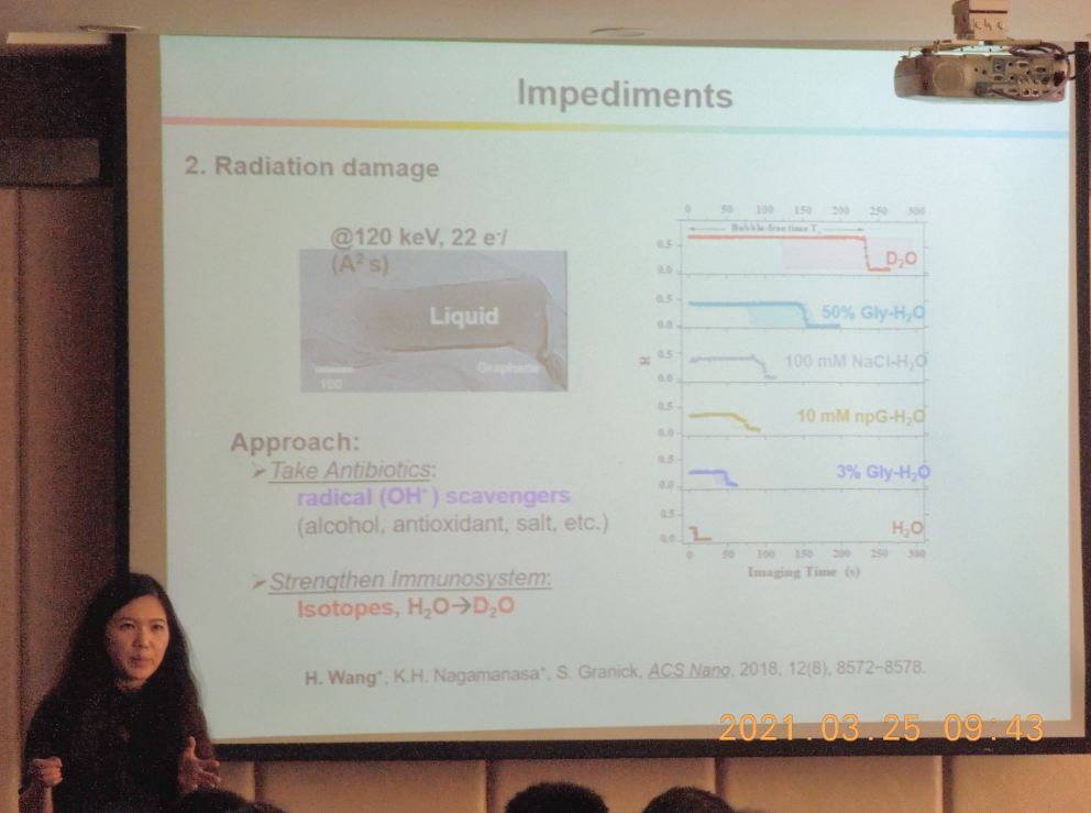 会上,王欢研究员做了有关非平衡态单分子成像以及各类反应中分子扩散速率的变化的报告,讨论了应用两种非传统分析技术研究非平衡化学体系时观察到的新实验现象和基于此引发的物理化学新问题,首先是发展原位“单分子”液相电镜对大分子相互作用、生化反应等进行单分子水平全构型动态成像。其次是将二维扩散核磁方法和微流控的方法应用到考察化学反应对溶质和溶剂等小分子的运动机制的影响中。本次报告老师与同学们反响热烈,并与王欢研究员进行了深刻的交流,进一步开拓了学术视野。