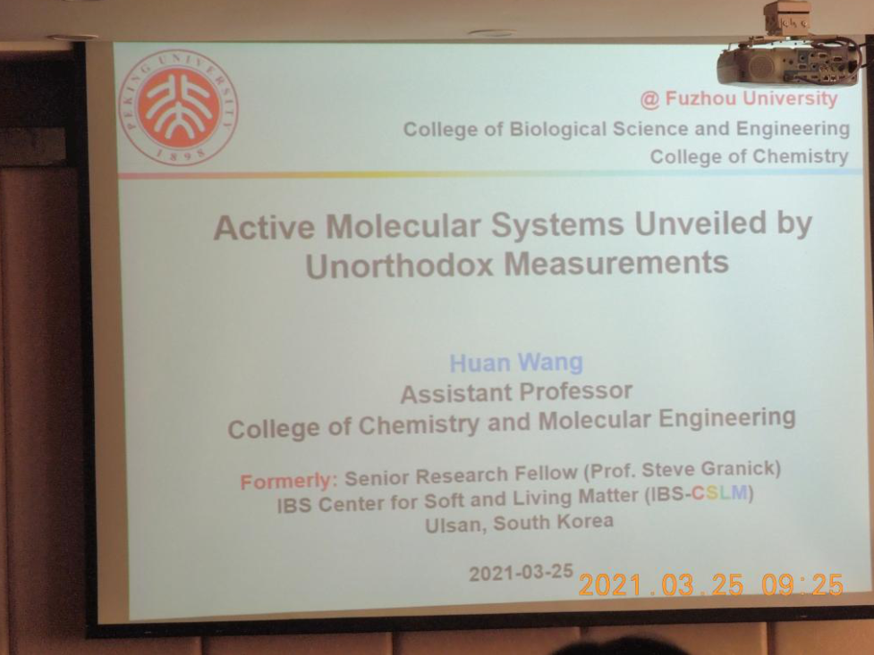 2021年3月25日,北京大学化学与分子工程学院的王欢研究员受邀在威尼斯wns8885556生工北楼柏物产厅为威尼斯官网师生作了题为“非平衡化学体系的单分子成像和非传统分析”的学术报告。本次报告由黄彦副教授主持,生工学院、化学学院的林振宇、陈秋水、罗芳、田永奇、张芳等老师及研究生参加了此次报告。