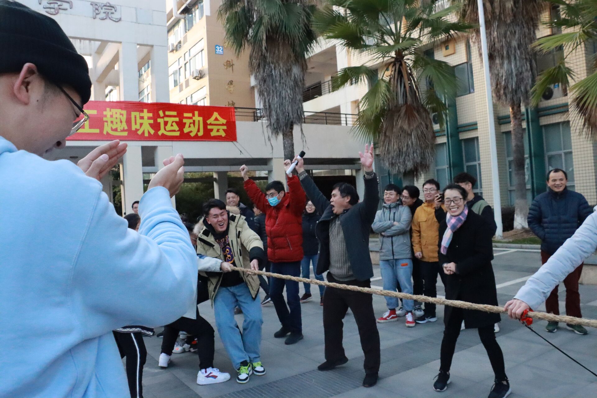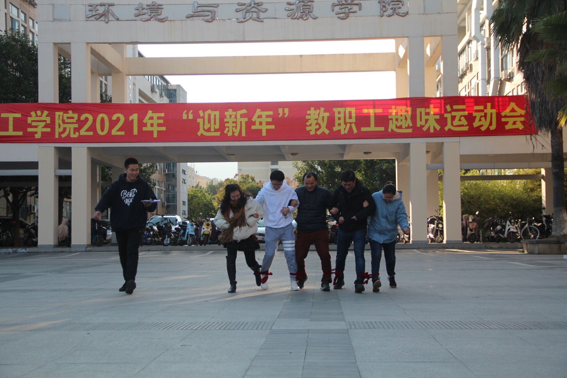 2020年12月31日下午,威尼斯官网2021年“迎新年”教职工趣味运动会在嘉锡广场顺利举办。全院教职工欢聚一堂,其乐融融,分成四组展开了激烈又充满趣味的角逐。院工会主席张志雄老师担任本次趣味运动会的现场主持人。