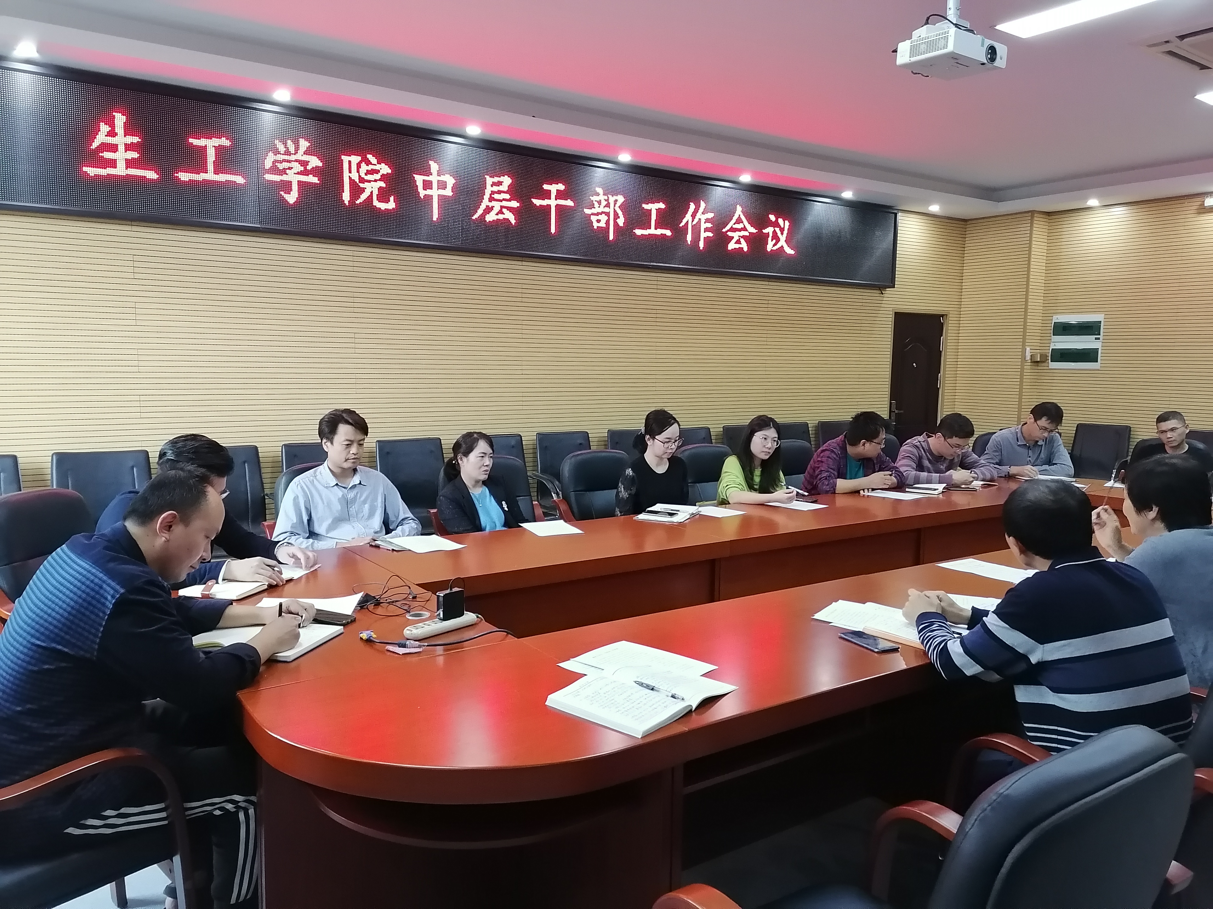 10月29日下午,生工学院中层干部大会在学院225会议室召开,全体院领导、科级干部、院长助理、系与实验中心正副主任参加会议,会议由院党委书记王秀萍主持。