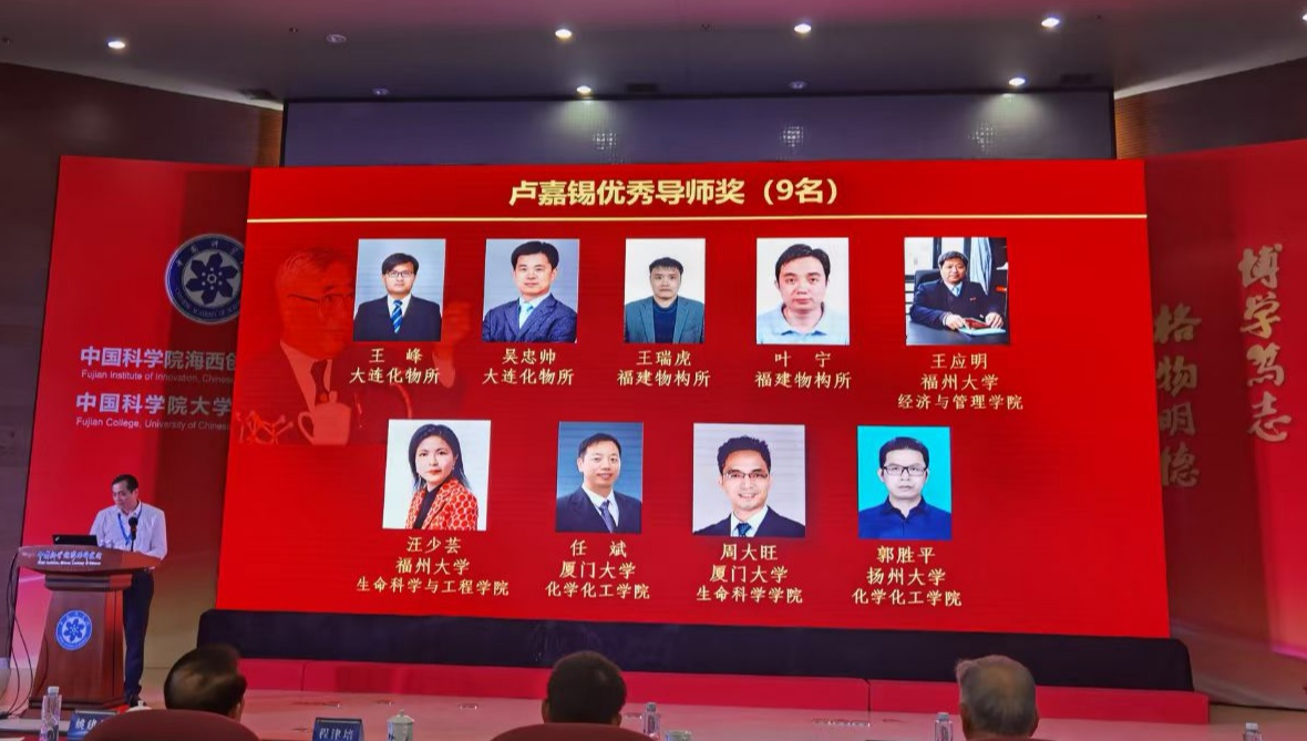 近日,经过卢嘉锡科学教育基金会评审,威尼斯官网汪少芸教授荣获2020年度卢嘉锡优秀导师奖,颁奖仪式于2020年11月22日在中国科学院海西研究院隆重举行,汪少芸教授上台接受中国科学院院士颁奖嘉宾亲自颁奖。