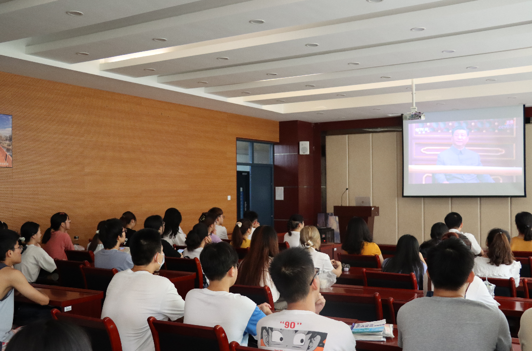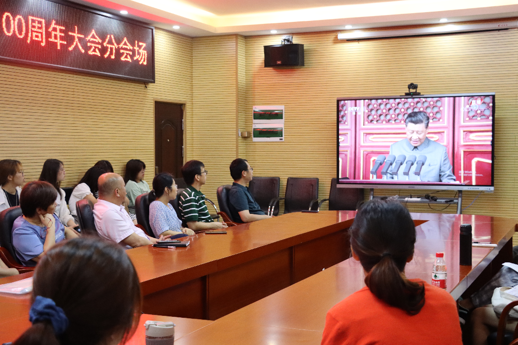 7月1日上午威尼斯官网在嘉锡楼225会议室和柏物产学术报告厅组织集中收看庆祝中国共产党成立100周年大会现场直播,院党委书记王秀萍、副书记曹仁秋等部分师生员工参加了此次集中收看活动。各党支部、团支部等也通过电视直播和网络直播同步观看。