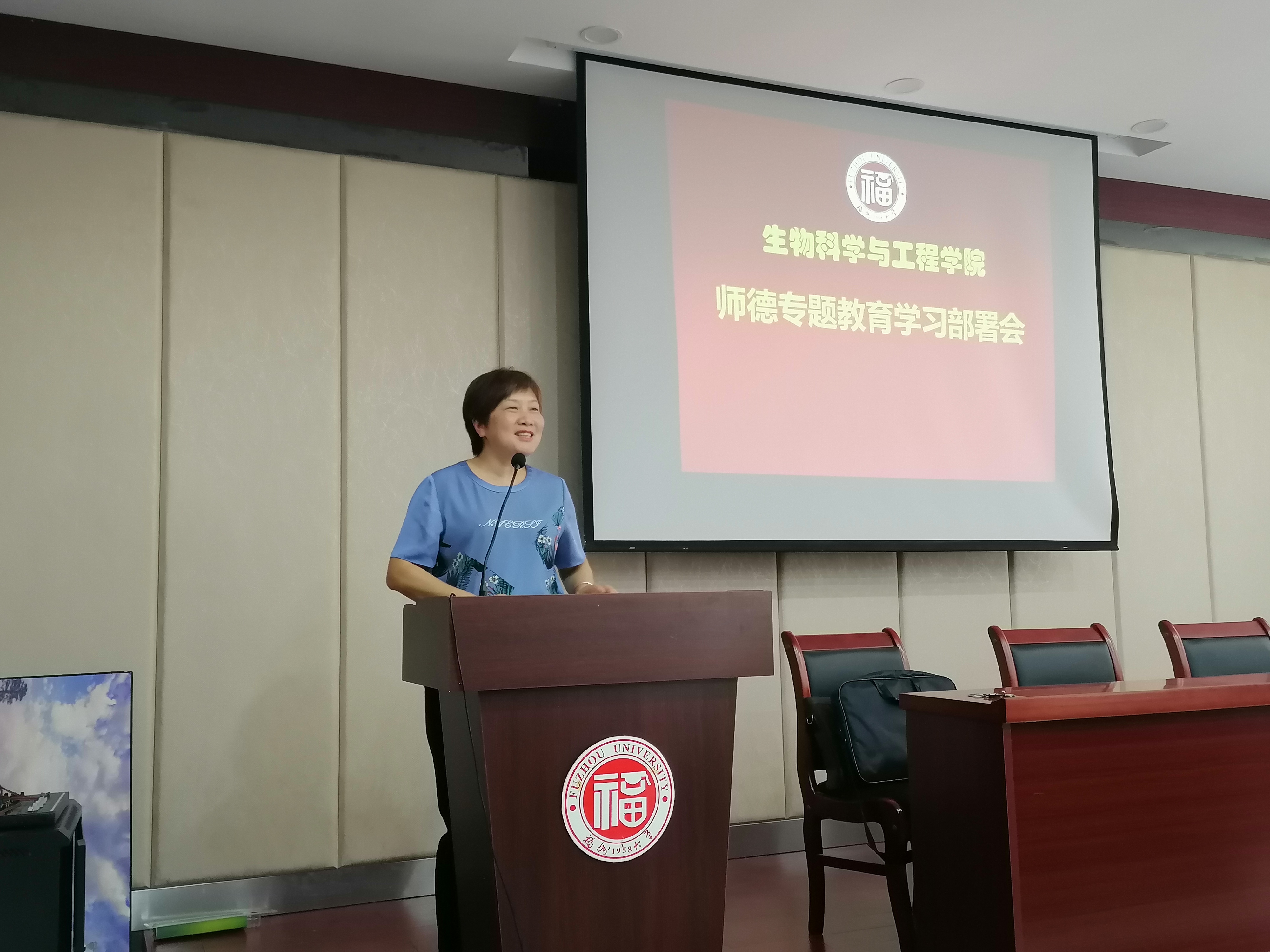 2021年7月8日下午,生工学院师德专题教育学习会在柏物产报告厅举行,学院王秀萍书记主持了会议,全院教职员工参加了会议。