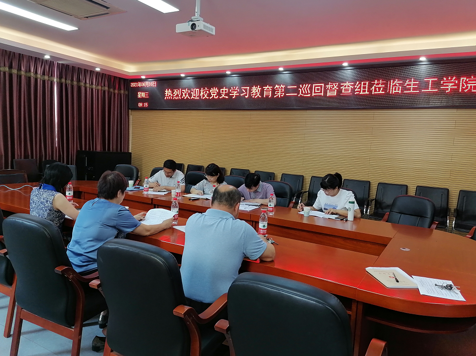 按照学校党史学习教育活动领导小组办公室的工作安排,为巩固学习成果,扎实推进党史学习教育活动纵深开展,6月16日上午,威尼斯wns8885556党史学习教育第二巡回督查组组长庄晨忠和组员唐华琳、吕蓉蓉、蔡英灵一行4人到生工学院检查指导党史学习教育工作进展情况,并召开调研座谈会,生工学院党委王秀萍书记、汪少芸执行院长、曹仁秋副书记以及党委办等人员参加了会议。