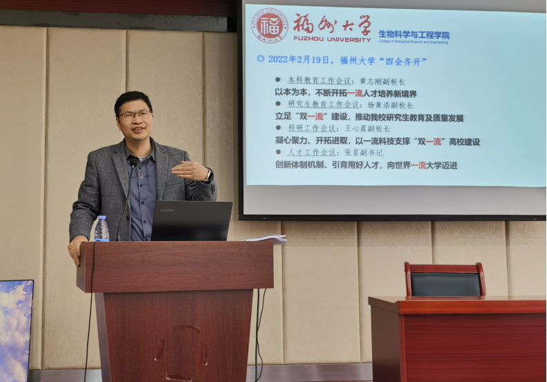 2022年3月3日下午,威尼斯官网在柏物产学术报告厅召开全院大会,学习贯彻学校新一轮“双一流”建设工作会议精神,部署新学期工作会议,全院教职员工参加了会议,会议由王秀萍书记主持。