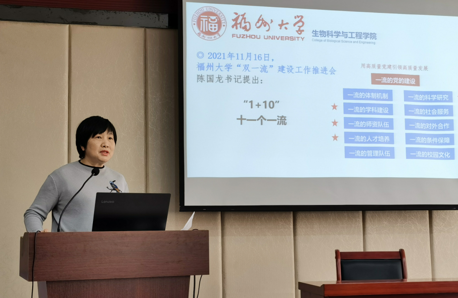 王秀萍书记传达了学校新一轮“双一流”建设工作会议暨新学期工作会议精神。她指出,本次会议坚持跳出教育看教育、立足全局看教育、放眼长远看教育,分析研究“双一流”建设面临的新任务新要求,以学科建设为龙头,聚焦“11个一流”核心内涵要求,统一思想、凝心聚力,学校将全面对标对表“双一流”建设各项指标,把争列2-3个世界一流建设学科作为学校“十四五”期间的“一号工程”,并提出了“1+3”的建设路径,即推进化学世界一流学科建设行动和新一代信息技术学科群、智能建造学科群、大数据与智慧管理学科群等3个世界一流学科培育学科建设行动,全面打响争列更多世界一流建设学科攻坚战。