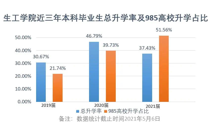 学院高度重视本科生的升学与就业工作,通过职业生涯规划讲座、升学就业指导专题讲座、经验分享会等方式帮助学生明晰未来发展方向,提供专业性指导。近三年来,学院本科生毕业率、就业率和升学率均保持较高水平,位列学校前茅,考取国内985高校研究生比例不断提高,升学和就业质量不断提升。